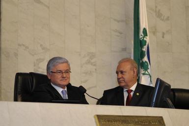 Keywords: Na mesa diretora, deputados Rossoni e Ademar Traino. Fotos: Sandro Nascimento (Alep / crédito obrigatório)