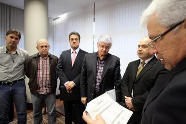 | Keywords: paranhos ademar traiano ademartraiano plauto miró plautomiró valdir rossoni valdirrossoni orçamento ppa people groupshot A proposta do Orçamento do Estado para o exercício de 2012 e o Plano Plurianual (PPA) para 2012/2015 foram entregues pelo chefe da Casa Civil, Durval Amaral, nesta quinta-feira (29), ao presidente da Assembleia Legislativa, deputado Valdir Rossoni. A entrega aconteceu no Gabinete da Presidência do Legislativo. O ato foi acompanhado pelo 1º secretário, deputado Plauto Miró, pelo líder do Governo, deputado Ademar Traiano, e pelo deputado Paranhos. Foto: Nani Gois/Alep (crédito obrigatório) A proposta do Orçamento do Estado para o exercício de 2012 e o Plano Plurianual (PPA) para 2012/2015 foram entregues pelo chefe da Casa Civil, Durval Amaral, nesta quinta-feira (29), ao presidente da Assembleia Legislativa, deputado Valdir Rossoni. A entrega aconteceu no Gabinete da Presidência do Legislativo. O ato foi acompanhado pelo 1º secretário, deputado Plauto Miró, pelo líder do Governo, deputado Ademar Traiano, e pelo deputado Paranhos. Foto: Nani Gois/Alep (crédito obrigatório) |