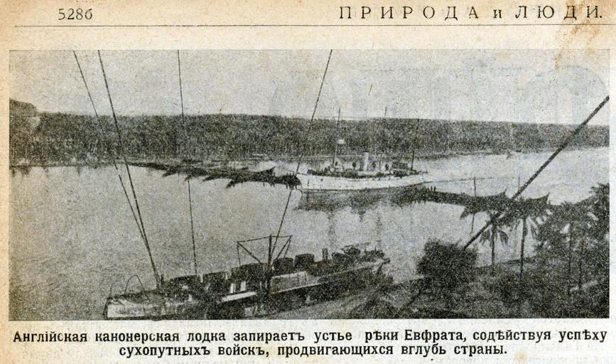 | Keywords: Природа и люди 29 Английская канонерская лодка в устье Евфрата.jpg  ru Английская каноне ская лодка запи ает устье  еки Евф ата в буквальном смысле содействуя успеху б итанских сухопутных войск п одвигающихся вглубь ст аны Османской Импе ии <small> подпись под снимком </small> П и ода и люди  33 от 18 июня 1915 года ст 528б общей годовой нуме ации unknown в пе воисточнике не указан 1915 PD-RusEmpire Nature and People 1915 Ships of the United Kingdom History of Iraq Ottoman Empire in World War I Bridges in Iraq |