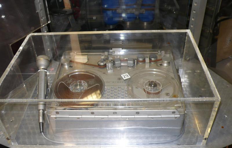 | Keywords: 29 Bathyscaph Trieste German Museum Munich.JPG Bathyscaph Trieste Deutsches Museum München 1 Schalttafel für die Außenbeleuchtung 3 Scheinwerfer Quecksilberdampflampen an der Unterseite des Schwimmkörpers und 2 Glühlampen in Stahlgehäusen am Beobachtungsfenster der Tauchkugel und im Vorzimmer Ateliers de Constructions Mécaniques de Vevey S A Vevey Schweiz 2 Schalttafel zur Betätigung der Ballastschleusen und anderen Einrichtungen Ateliers de Constructions Mécaniques de Vevey S A Vevey Schweiz 3 Schalttafel für die Antriebsmotoren Ateliers de Constructions Mécaniques de Vevey S A Vevey Schweiz 4 Reservematerial 5 Chronometer des Fabrikats wie es auch bei den Ballonflügen in die Stratosphäre 1931 und 1932 von Auguste Piccard benutzt wurde Ateliers de Constructions Mécaniques de Vevey S A Vevey Schweiz 6 Totalisator zur Kontrolle der Ballastabgabe Mit zwei Sekunden-Zählwerken die nur laufen wenn der Strom der zugehörigen Ballastschleuse unterbrochen ist und Ballast abgegeben wird Da der Ballastausfluß jeder Schleuse ziemlich genau 10 kg je Sekunde beträgt kann man sofort erkennen wie viel Ballast verbraucht worden ist Langines Compagnie des Mantres Longines Francillon S A St Imier Schweiz 7 Manometer die zur Ermittlung der Tauchtiefe den Wasserdruck messen Haenni Jegenstorf Schweiz 8 Hochdruckventil 1200 kp/qcm Maschinenfabrik Burckhardt Aktiengesellschaft Basel Schweiz 9 Wasserdichter und explosionsgeschützter Fernsprechapparat für Batteriebetrieb mit einer Buchse im Schwimmkörper so dass nach dem Auftauchen eine Kabelverbindung mit Begleitfahrzeugen hergestellt und so beim Tauchen bis in geringe Tiefen aufrechterhalten werden kann Società Italiana Telecomunicazioni Siemens s p a Milano Italien 10 Automatische Filmkamera Bolex H 16 Reflex Paillard S A Ste Croix Schweiz 11 Photographische Kamera Exakta Ihagee Kamerawerk A G Dresden 12 Anzeigeinstrument des Nickelwiederstandsthermometers zur Messung der Temperatur des Tragebenzins Bosco Co S p a Torino Italien 13 Pendel zur Bestimmung der Trimmlage 14 Zink-Silber-Akkumulatoren zum Betrieb elektrischer Geräte der Ballastschleusen der Haltemagnete der Antriebsmotoren der Ventilatoren der Scheinwerfer Lampen und Innenbeleuchtung 330 Zellen zu je 1 5 Volt Electrona S A Boudry Schweiz 15 Pressluftflaschen zum Ausblasen des Wassers aus Vorzimmer und Einsteigeschacht AGA A G Pratteln-Zürich-Genf 16 Sauerstoff-Flaschen der Belüftungsanlage um den Sauerstoffgehalt der Atemluft in der Tauchkugel zu erneuern AGA A G Pratteln-Zürich-Genf 17 Natronpatronen Aus den Druckflaschen in einem Injektor strömender Sauerstoff saugt Raumluft durch diese drei Patronen Kohlendioxyd wird absorbiert und die gereinigte Luft gelangt gemischt mit Sauerstoff im Kreislauf in die Kabine zurück Drägerwerk Lübeck 18 Schalttafel Ateliers de Constructions Mécaniques de Vevey S A Vevey Schweiz 19 Unterwassertelefon nach Russel Lewis Laboratorium für Unterwasserschall New London Connecticut USA mit dem auch während des Tauchens eine Sprech- oder Signalverbindung mit dem Begleitschiff aufrechterhalten werden kann Die beim Sprechen auf das Mikrofon auftreffenden Schallwellen werden im Bereich von 300 bis 3000 Hertz in elektrische Schwingungen und nach Verstärkung zur à bertragung im Wasser in Unterschallschwingungen von 8387 bis 11087 Hertz umgewandelt Einseitenband-Modulation mit unterdrücktem Träger Beim Empfang findet der umgekehrte Vorgang statt 20 Echolot 21 Log zum messen der Vertikalgeschwindigkeit 22 Innenbeleuchtung mit 6 kleinen Glühlampen zur Beobachtung der Instrumente Sie beleuchten die weiß gestrichene Decke der Tauchkugel und sind gegen die Besatzung abgeschirmt um Blendwirkung zu vermeiden 23 Traggerüste für die Geräteausstattung Verformungen der Kugel durch Temperaturänderungen werden von Schraubfedern aufgenommen die in Bohrungen am oberen Ende der Stangen sitzen und einen Messingkolben gegen die Kugelwand drücken Ateliers de Constructions Mécaniques de Vevey S A Vevey Schweiz 24 Sitze 25 Fußboden der den Keller abdeckt Im Keller werden Alkalipatronen zur Erneuerung der Atemluft Druckgasflaschen zum Ausblasen des Einsteigschachtes nach einer Tauchfahrt und anderes Reservematerial aufbewahrt 26 Tauchkugel Fried Krupp Essen 27 Einsteigeluke 28 Hauptbeobachtungsfenster 29 Tonbandgerät Kudelski NAGRA Type I Kudelski Enregistreur autonomes Nagra Paudex-Lausanne own Reinraum 2010-09-19 Trieste submarine 1953 Nagra |