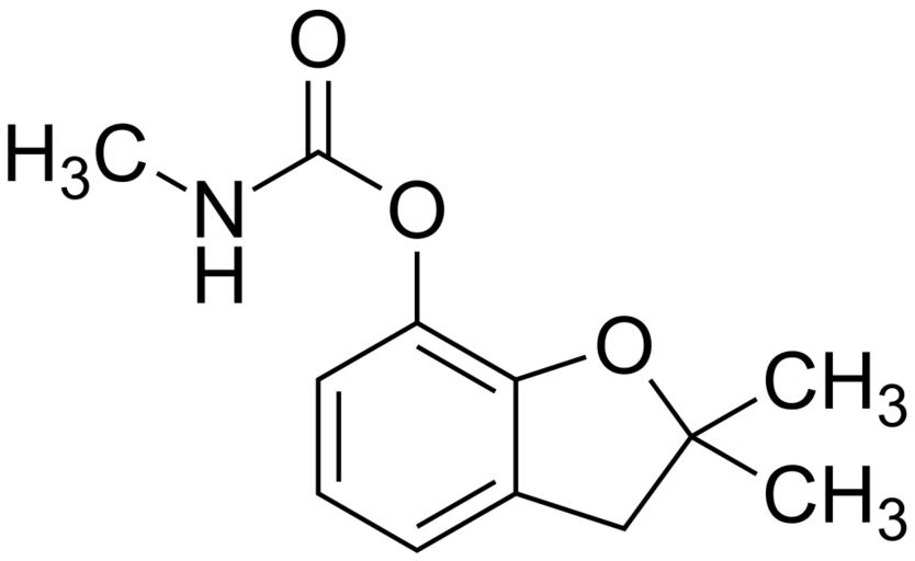 | Keywords: 2,2-dimethyl-2,3-dihydrobenzofuran-7-yl methylcarbamate 200.svg validSVG Structure of 2 2-dimethyl-2 3-dihydrobenzofuran-7-yl methylcarbamate Own 2014-04-21 Emeldir <span class signature-talk >talk</span> Chemical structure verified https //upload wikimedia org/wikipedia/commons/9/95/2 2C2-dimethyl-2 2C3-dihydrobenzofuran-7-yl_methylcarbamate_200 svg 1S/C12H15NO3/c1-12 2 7-8-5-4-6-9 10 8 16-12 15-11 14 13-3/h4-6H 7H2 1-3H3 H 13 14 DUEPRVBVGDRKAG-UHFFFAOYSA-N 1563-66-2 216-353-0 Synonyms <small>2 3-Dihydro-2 2-dimethyl-7-benzofuranyl methylcarbamate 2 3-Dihydro-2 2-dimethylbenzofuranyl-7-N-methylcarbamate 2 2-Dimethyl-2 2-dihydrobenzofuranyl-7 N-methylcarbamate 2 2-dimethyl-2 2-dihydrobenzofuranyl-7-N-methylcarbamate 2 2-Dimethyl-2 2-dihydrobenzofuranyl-7-N-methylcarbamate 2 2-Dimethyl-2 3-dihydro-7-benzofuranyl-N-methylcarbamate 2 2-Dimethyl-2 3-dihydrobenzofuranyl 7-methylcarbamate 2 2-Dimethyl-2 3-dihydrobenzofuranyl-7 N-methylcarbamate 2 2-Dimethyl-7-coumaranyl N-methylcarbamate 2 3-Dihydro-2 2-dimethyl-7-benzofuranol methylcarbamate 2 3-Dihydro-2 2-dimethyl-7-benzofuranol N-methylcarbamate 2 3-Dihydro-2 2-dimethyl-7-benzofuranyl methylcarbamate 2 3-Dihydro-2 2-dimethyl-7-Benzofuranyl Methylcarbamate 2 3-Dihydro-2 2-dimethyl-benzofuran-7-yl methylcarbamate 2 3-Dihydro-2 2-dimethylbenzofuranyl methylcarbamate 2 3-dihydro-2 2-dimethylbenzofuranyl methylcarbamate 4-Dimethylamino-3 5-xylyl-methylcarbamate 7-Benzofuranol 2 3-dihydro-2 2-dimethyl- methylcarbamate 9CI Bay 70143 BAY 70143 BAY 78537 Carbamic acid methyl- 2 3-dihydro-2 2-dimethyl-7-benzofuranyl ester 8CI Carbamic acid methyl- 2 2-dimethyl-2 3-dihydrobenzofuran-7-yl ester Carbodan Carbofuran Carbofuran;2 2-Dimethyl-2 2-dihydrobenzofuranyl-7-N-methylcarbamate; 2 2-Dimethyl-2 3-dihydrobenzofuranyl 7-methylcarbamate; 2 3-Dihydro-2 2-dimethyl-7-benzofuranol methylcarbamate; Carbosip Chinufur Crisfuran Curaterr D 1221 Dihydro-2 2-dimethyl-7-benzofuranyl methylcarbamate Dihydro-2 2-dimethyl-7-benzofuranyl N-methylcarbamate Dihydro-2 2-dimethylbenzofuran-7-yl methylcarbamate Dihydro-2 2-dimethylbenzofuranyl-7-N-methylcarbamate ENT 27 164 FMC 10242 Furacarb Furadan Furadan 3G Furadan R furodan Furodan Kenofuran methylcarbamic acid 2 3-dihydro-2 2-dimethyl-7-benzofuranyl ester Methylcarbamic acid 2 3-dihydro-2 2-dimethyl-7-benzofuranyl ester Methylcarbamic acid 2 2-dimethyl-2 3-dihydro-7-benzofuranyl ester Methylcarbamic acid 2 2-dimethyl-2 3-dihydrobenzofuran-7-yl ester Nex NIA 10242 nia 10242 niagara 10242 Niagara 10242 OMS 864 Pillarfuran WLN T56 BOT J C1 C1 IOVM1 Yalox Yaltox</small> PD-chem Carbofuran |