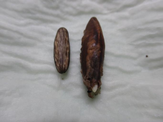 Keywords: 鳳凰木種子2.JPG zh 泡水前後比較 own 水 2014-06-12 於台灣台中 Delonix regia