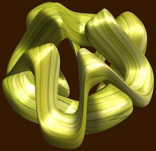 | Keywords: mathematica 3d cg parametricplot3d texture torus 輪環 りんかん ドーナツ どーなつ 四芒星 しぼうせい 四光星 しこうせい 四稜星 しりょうせい 竹 たけ bamboo code program algorithm コード プログラム アルゴリズム geometric sculpture geometricsculpture shape geometry sculpture mapping テクスチャ マッピング 模様 もよう abstract 抽象 ちゅうしょう アブストラクト design pattern デザイン パターン graphic グラフィック グラフィクス structure 意匠 構造 symmetry 対称性 たいしょうせい シンメトリー 対称 たいしょう algorithm コード black background indoor photo border a = 3; (* center hole size *) b = 4; (* tetra-torus *) c = -4; (* distance from the center of rotation *) d = 2; (* number of torus *) h = 2; (* height of a torus *) SetOptions[ParametricPlot3D, PlotRange -> Full, Mesh -> None, Boxed -> False, Axes -> False, PlotPoints -> 400, ImageSize -> 3000, Background -> Darker[Orange, 0.8], PlotStyle -> Directive[Specularity[White, 30], Texture[Import["D:/tmp/71.jpg"]]], TextureCoordinateFunction -> ({#4 + #5, #5 / Pi} &), Lighting -> "Neutral"]; f[v_] := Sin[2 Sin[Sin[Sin[v]]]]; x = (a - Cos[t] - f[b s]) Cos[s]; y = (a - Cos[t] - f[b s]) Sin[s]; z = (a - f[t] - h f[b s]) + c; rot = Table[{x, y, z}.RotationMatrix[2 i Pi/d, {1, 1, 0}], {i, d}]; ParametricPlot3D[rot, {t, 0, 2 Pi}, {s, 0, 2 Pi}] (*--- The Texture is this: www.flickr.com/photos/tanaka_juuyoh/5239255695/ *) a = 3; (* center hole size *) b = 4; (* tetra-torus *) c = -4; (* distance from the center of rotation *) d = 2; (* number of torus *) h = 2; (* height of a torus *) SetOptions[ParametricPlot3D, PlotRange -> Full, Mesh -> None, Boxed -> False, Axes -> False, PlotPoints -> 400, ImageSize -> 3000, Background -> Darker[Orange, 0.8], PlotStyle -> Directive[Specularity[White, 30], Texture[Import["D:/tmp/71.jpg"]]], TextureCoordinateFunction -> ({#4 + #5, #5 / Pi} &), Lighting -> "Neutral"]; f[v_] := Sin[2 Sin[Sin[Sin[v]]]]; x = (a - Cos[t] - f[b s]) Cos[s]; y = (a - Cos[t] - f[b s]) Sin[s]; z = (a - f[t] - h f[b s]) + c; rot = Table[{x, y, z}.RotationMatrix[2 i Pi/d, {1, 1, 0}], {i, d}]; ParametricPlot3D[rot, {t, 0, 2 Pi}, {s, 0, 2 Pi}] (*--- The Texture is this: www.flickr.com/photos/tanaka_juuyoh/5239255695/ *) |