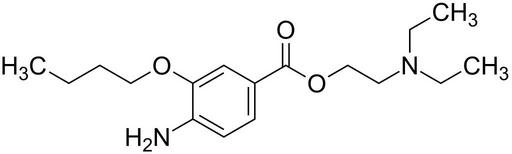 | Keywords: 2-(diethylamino)ethyl 4-amino-3-butoxybenzoate 200.svg validSVG Structure of 2- diethylamino ethyl 4-amino-3-butoxybenzoate Own 2014-04-19 Emeldir <span class signature-talk >talk</span> Chemical structure verified https //upload wikimedia org/wikipedia/commons/f/fe/2- 28diethylamino 29ethyl_4-amino-3-butoxybenzoate_200 svg 1S/C17H28N2O3/c1-4-7-11-21-16-13-14 8-9-15 16 18 17 20 22-12-10-19 5-2 6-3/h8-9 13H 4-7 10-12 18H2 1-3H3 CMHHMUWAYWTMGS-UHFFFAOYSA-N 99-43-4 Synonyms <small>2- Diethylamino ethyl 4-amino-3-butoxybenzoate 2-Diethylaminoethyl 4-amino-3-butoxybenzoate hydrochloride 4-14-00-02076 Beilstein Handbook Reference 4-Amino-3-butoxy-2- diethylamino benzoic acid ethyl ester Benoxil Benoxinate Benoxinate Hydrochloride BRN 2288926 Conjucain Novesinol Oksibuprokaiinihydrokloridi Oksibuprokain Hidroklorür Oksibuprokaino hidrochloridas Oxibuprocaina Oxibuprocainum Oxibuprocaína hidrocloruro de Oxibuprokain Oxibuprokain-hidroklorid Oxibuprokainhydroklorid Oxybucaine Oxybuprocaine Oxybuprocaine Hydrochloride Oxybuprocaini Hydrochloridum Oxybuprocainum Oxybuprocaïne chlorhydrate d Oxybuprokain hydrochlorid Oxyriprocaine Prescaina S 749</small> PD-chem Anilines Carboxylate esters Phenol ethers Tertiary amines Butyl ethers Ethyl compounds Local anesthetics |
