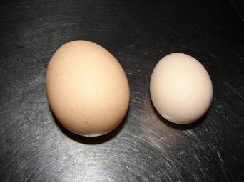 Keywords: 2 oeufs de 2 poules de meme taille et gabari (vue sur cote).JPG fr 2 œufs obtenus de 2 poules de même taille et de même gabarit vue de côté 2012-09-30 own Copyleft cc-zero Uploaded with UploadWizard Chicken eggs