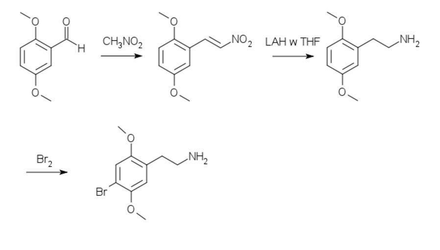 Keywords: 2cbtotalsynthesis.png Total synthesis of 2C-B from 2 5-dimethoxybenzaldehyde own 2012-04-24 User Cczeslaww Źródło praca własna 2012-04-24 Wikipedysta Cczeslaww Warunki udostępnienia Szablon licencji Inne wersje Cc-zero Drug syntheses