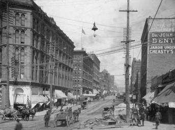 | Keywords: 2nd Ave looking north from Yesler Way, Seattle, Washington, ca1895 (LAROCHE 317).jpeg Pioneer Square-Skid Road Photograph Creator Frank La Roche Caption on image Second Ave Seattle Shows the Occidental Hotel bounded by Yesler James and 2nd Ave to the left later the Hotel Seattle ; Butler Hotel at center Subjects LCTGM Streets--Washington State --Seattle; Buildings--Washington State --Seattle; Carriages coaches--Washington State --Seattle; Carts wagons--Washington State --Seattle Subjects LCSH Second Avenue Seattle Wash ; Occidental Hotel Seattle Wash ; Butler Hotel Seattle Wash depicted place Seattle Washington ca 1891 Institution University of Washington UWASH-LAROCHE-source accession number laroche 317 PD-old-auto-1923 1936 Information field Order Number LAR099 Hotel Seattle Butler Hotel Broderick Building Seattle Collins Block Second Avenue Seattle Seattle Washington in the 1890s Telephone poles in the United States Black and white photographs ImageNote 1 35 35 1660 2545 4000 2980 2 Hotel Seattle ImageNoteEnd 1 ImageNote 2 1690 1175 455 1130 4000 2980 2 Butler Block/Butler Hotel ImageNoteEnd 2 ImageNote 3 2105 1180 205 1030 4000 2980 2 Bailey Building now Broderick Building ImageNoteEnd 3 ImageNote 4 3210 420 770 1235 4000 2980 2 Collins Block ImageNoteEnd 4 |