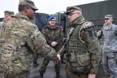 | Keywords: 212th combat support hospital 212thcombatsupporthospital 212th csh 212thcsh 30th medical brigade 30thmedicalbrigade 421st mmb 421stmmb 421st multifunctional medical battalion 421stmultifunctionalmedicalbattalion medshock bundeswehr germany mccully barracks mccullybarracks medical nato role 1 role1 role 2 role2 training finthen lta finthenlta people sport outdoor 30th Medical Brigade hosts Distinguished Visitor day during MEDSHOCK, a no-notice exercise, on Jan. 28, 2016 at Finthen LTA, Germany. Attendees included Brigadier General Norvell Coots, Regional Health Command Europe Commanding General, Brigader General Arlan DeBlieck, 7th Mission Support Command Commanding General, members of NATO Center of Excellence, and Bundeswehr medical personnel (U.S. Army photo by Capt. Jeku Arce, 30th Medical Brigade Public Affairs/released). 30th Medical Brigade hosts Distinguished Visitor day during MEDSHOCK, a no-notice exercise, on Jan. 28, 2016 at Finthen LTA, Germany. Attendees included Brigadier General Norvell Coots, Regional Health Command Europe Commanding General, Brigader General Arlan DeBlieck, 7th Mission Support Command Commanding General, members of NATO Center of Excellence, and Bundeswehr medical personnel (U.S. Army photo by Capt. Jeku Arce, 30th Medical Brigade Public Affairs/released). |
