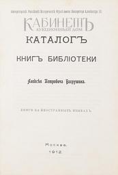 Каталог книг библиотеки Алексея Петровича Бахрушина. Выпуск I. Выпуск II. Выпуск дополнительный - Книги на иностранных языках. М., Типо-Литография Торгового Дома А.П. Коркин, 1911-1912.