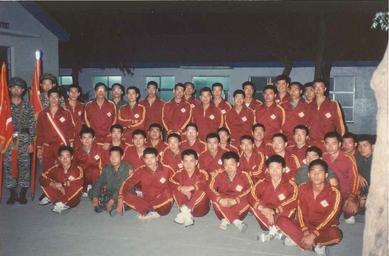 Keywords: 318HQ合照.jpg zh-tw 海軍陸戰隊第六十六師六五六 三 八營營部 弟兄合照於集合場 own Chih-Ling-Chiang date People of Republic of China Marine Corps Red clothing male