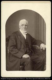 | Keywords: 327 MSS P 24 B2 F14.jpg Sitting portrait of a man with white hair and beard in a chair Written on back- J Taylor Back label- C R Savge Art Bazar Medals 1890 depicted people Taylor John 1808-1887--Portraits; depicted place circa 1880 1890 Albumen Cabinet- 4 1/4 x 6 1/2 in Institution Harold B Lee Library https //sites lib byu edu/sc/ L Tom Perry Special Collections object history exhibition history credit line accession number http //cdm15999 contentdm oclc org 80/cdm/ref/collection/Savage/id/941 PD-100 PD-1923 Harold B Lee Library partnership Images from the Harold B Lee Library HBLL C R Savage collection Uploaded with pattypan John Taylor Latter Day Saints 1880s portrait photographs 19th-century portrait photographs of sitting men at three-quarter length Men with beards |