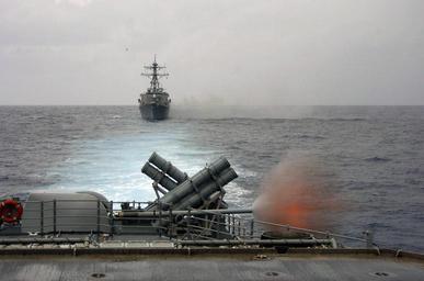 | Keywords: 01 official u.s. navy photo by 01officialusnavyphotoby 02 ph3 bo flannigan (released) 02ph3boflanniganreleased uss cowpens (cg 63) usscowpenscg63 pacific ocean (poc) pacificoceanpoc outdoor sea 330-CFD-DN-SD-06-10078: The Ticonderoga Class Guided Missile Cruiser USS COWPENS (CG 63) fires a round from one of her two Mark (MK) 45 5-inch/54 caliber (lightweight) guns during a joint exercise with vessels assigned to the USS KITTY HAWK (CV 63) Carrier Strike Group (CSG). The MK 45 lightweight gun provides surface combatants accurate naval gunfire against fast, highly maneuverable surface targets, air threats and shore batteries during amphibious operations. Behind the gun mount are the ships two quad Harpoon missile launchers. The COWPENS is currently operating in the Coral Sea in support of the combined exercise TALISMAN SABRE 2005. Trailing the COWPENS is the USN Arleigh Burke Class Guided Missile Destroyer USS FITZGERALD (DDG 62). TALISMAN SABRE is an exercise jointly sponsored by the US Pacific Command (USPACOM) and Australian Defense Force Joint Operations Command, and designed to train the US 7th Fleet Commander's staff and Australian Joint Operations staff as a designated Combined Task Force (CTF) headquarters. The exercise focuses on crisis action planning and execution of contingency response operations. USPACOM units and Australian forces will conduct land, sea and air training throughout the training area. More than 11,000 US and 6,000 Australian personnel will participate. PH3 Bo J. Flannigan, USN. (OPA-NARA II-2015/12/24). 330-CFD-DN-SD-06-10078: The Ticonderoga Class Guided Missile Cruiser USS COWPENS (CG 63) fires a round from one of her two Mark (MK) 45 5-inch/54 caliber (lightweight) guns during a joint exercise with vessels assigned to the USS KITTY HAWK (CV 63) Carrier Strike Group (CSG). The MK 45 lightweight gun provides surface combatants accurate naval gunfire against fast, highly maneuverable surface targets, air threats and shore batteries during amphibious operations. Behind the gun mount are the ships two quad Harpoon missile launchers. The COWPENS is currently operating in the Coral Sea in support of the combined exercise TALISMAN SABRE 2005. Trailing the COWPENS is the USN Arleigh Burke Class Guided Missile Destroyer USS FITZGERALD (DDG 62). TALISMAN SABRE is an exercise jointly sponsored by the US Pacific Command (USPACOM) and Australian Defense Force Joint Operations Command, and designed to train the US 7th Fleet Commander's staff and Australian Joint Operations staff as a designated Combined Task Force (CTF) headquarters. The exercise focuses on crisis action planning and execution of contingency response operations. USPACOM units and Australian forces will conduct land, sea and air training throughout the training area. More than 11,000 US and 6,000 Australian personnel will participate. PH3 Bo J. Flannigan, USN. (OPA-NARA II-2015/12/24). |