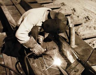 | Keywords: 330-PS-1328 (USN 427451): A welder learns many tricks in the Seabees. This welder, is securing a reinforced plate during an assembly job on a string of pontoons. Welding is an important skill in building and maintaining the Navy’s advanced bases. Photograph released April 23, 1951. (6/16/2015). 330-PS-1328 (USN 427451): A welder learns many tricks in the Seabees. This welder, is securing a reinforced plate during an assembly job on a string of pontoons. Welding is an important skill in building and maintaining the Navy’s advanced bases. Photograph released April 23, 1951. (6/16/2015). |