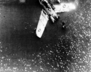 | Keywords: blackandwhite monochrome black and white 330-PS-2165 (80761 A.C.): Pictured in enlargement from U.S. Air Force aerial photograph is the wreckage of a MiG-15, downed by USAF F-86 “Sabrejets” in aerial battles of early July in the area of Hamchon, North Korea. The wreckage lay in 17 feet of water during salvage operations and is here shown during low tide. The plane is assumed to have landed approximately 350 yards from this spot, where the tail assembly broke off and the plane skimmed to a stop on tidal flats about one mile off shore due west of Hamchon. It was located by aircraft from a British aircraft carrier on July 13 and a salvage operation was organized with units of the Royal British Navy, the ROK Navy, and U.S. Navy, and the U.S. Army and the U.S. Air Force all taking part. In front of the right is a man engaged in salvage operations and what appears to be insignia on the wing tips, is really coils of rope used in the operation. Object to rear of plane is a piece of fuselage. On July 18, prior to salvage operations, some activity, presumed to be enemy, was observed in the crash vicinity. No serious opposition to the salvage was encountered, although UN aircraft flying cover received some ground fire, and working parties reported hearing small arms and automatic weapons fire. The recovery was completed on July 21 and the wreckage arrived at the Air Technical Intelligence Center, Wright-Patterson Air Force Base on July 29 and has been dismantled and sent to various installations for study. Photograph released August 31, 1951. (6/2/2015). 330-PS-2165 (80761 A.C.): Pictured in enlargement from U.S. Air Force aerial photograph is the wreckage of a MiG-15, downed by USAF F-86 “Sabrejets” in aerial battles of early July in the area of Hamchon, North Korea. The wreckage lay in 17 feet of water during salvage operations and is here shown during low tide. The plane is assumed to have landed approximately 350 yards from this spot, where the tail assembly broke off and the plane skimmed to a stop on tidal flats about one mile off shore due west of Hamchon. It was located by aircraft from a British aircraft carrier on July 13 and a salvage operation was organized with units of the Royal British Navy, the ROK Navy, and U.S. Navy, and the U.S. Army and the U.S. Air Force all taking part. In front of the right is a man engaged in salvage operations and what appears to be insignia on the wing tips, is really coils of rope used in the operation. Object to rear of plane is a piece of fuselage. On July 18, prior to salvage operations, some activity, presumed to be enemy, was observed in the crash vicinity. No serious opposition to the salvage was encountered, although UN aircraft flying cover received some ground fire, and working parties reported hearing small arms and automatic weapons fire. The recovery was completed on July 21 and the wreckage arrived at the Air Technical Intelligence Center, Wright-Patterson Air Force Base on July 29 and has been dismantled and sent to various installations for study. Photograph released August 31, 1951. (6/2/2015). |