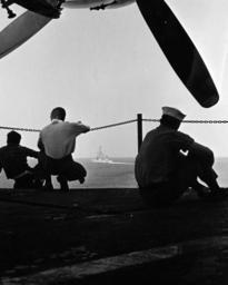 | Keywords: blackandwhite monochrome outdoor black and white 330-PSA-178-64 (USN 11042223): Sailors aboard the nuclear-powered carrier USS Enterprise (CVAN 65) relax on the flight deck after a day of flight operations during the global cruise. The missile frigate Long Beach (CLGN 9) is in the background. Master caption: Operation Sea Orbit has completed the first three weeks of its round-the-world cruise proving conclusively the feasibility of operation nuclear surface ships over great distances on a self-sustaining basis. Sea Orbit is the first world cruise of the surface nuclear ships. The task force is made-up of USS Enterprise (CVAN 64), USS Long Beach (CLGN 9), and USS Bainbridge (DLGN 25). The world cruise has a dual mission. It offers practical experience in operation of nuclear-powered warships independent of support ships, a fast impractical for conventionally powers ships. Equally important, and immediately evident is the opportunity to win friends in areas not frequently visited by U.S. Navy ships, and to show the world an all nuclear element of the world’s greats power for peace. Two other world circumnavigations were made by U.S. nuclear vessels, both submarines. Photograph released August 22, 1964. (2015/11/03). 330-PSA-178-64 (USN 11042223): Sailors aboard the nuclear-powered carrier USS Enterprise (CVAN 65) relax on the flight deck after a day of flight operations during the global cruise. The missile frigate Long Beach (CLGN 9) is in the background. Master caption: Operation Sea Orbit has completed the first three weeks of its round-the-world cruise proving conclusively the feasibility of operation nuclear surface ships over great distances on a self-sustaining basis. Sea Orbit is the first world cruise of the surface nuclear ships. The task force is made-up of USS Enterprise (CVAN 64), USS Long Beach (CLGN 9), and USS Bainbridge (DLGN 25). The world cruise has a dual mission. It offers practical experience in operation of nuclear-powered warships independent of support ships, a fast impractical for conventionally powers ships. Equally important, and immediately evident is the opportunity to win friends in areas not frequently visited by U.S. Navy ships, and to show the world an all nuclear element of the world’s greats power for peace. Two other world circumnavigations were made by U.S. nuclear vessels, both submarines. Photograph released August 22, 1964. (2015/11/03). |
