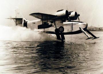 | Keywords: 330-PSA-300-62 (USN 711144): Hydrofoil Airplane. The U.S. Navy performed successful test flights of an experimental seaplane fitted with a super-cavitating hydrofoil system. Success of these test flights is another important step in the U.S. Navy’s efforts to improve seaplane operations in rough waters. The aircraft used for these tests is a Coast Guard, JRF-5, loaned to the U.S. Navy for these tests. The single, high-speed foil is mounted between ventilating struts below the aircraft’s center of gravity. The two skis extending forward of the bow stabilizes the aircraft during landing and takeoffs and prevents diving in the event the foil is damaged or destroyed. The tests were conducted for the U.S. Navy’s Bureau of Naval Weapons by the EDO Corporation of College Park, New York. Photograph released October 8, 1962. (10/6/2015). 330-PSA-300-62 (USN 711144): Hydrofoil Airplane. The U.S. Navy performed successful test flights of an experimental seaplane fitted with a super-cavitating hydrofoil system. Success of these test flights is another important step in the U.S. Navy’s efforts to improve seaplane operations in rough waters. The aircraft used for these tests is a Coast Guard, JRF-5, loaned to the U.S. Navy for these tests. The single, high-speed foil is mounted between ventilating struts below the aircraft’s center of gravity. The two skis extending forward of the bow stabilizes the aircraft during landing and takeoffs and prevents diving in the event the foil is damaged or destroyed. The tests were conducted for the U.S. Navy’s Bureau of Naval Weapons by the EDO Corporation of College Park, New York. Photograph released October 8, 1962. (10/6/2015). |