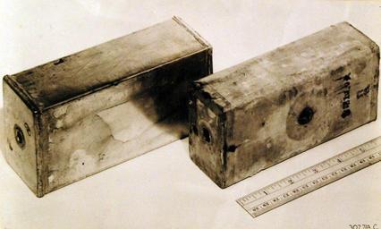 | Keywords: text 342-FH-3B23436: Japanese balloon, Fu-Go. Demolition block shows tin container and two-pound paper covered with Picric Acid charge. Holes on side and end are for blasting cap. Received February 8, 1946 from HQ. Fourth Air Force, San Francisco, California. U.S. Army Air Corps (Air Force) photograph, now in the collections of the National Archives. (5/26/2015). 342-FH-3B23436: Japanese balloon, Fu-Go. Demolition block shows tin container and two-pound paper covered with Picric Acid charge. Holes on side and end are for blasting cap. Received February 8, 1946 from HQ. Fourth Air Force, San Francisco, California. U.S. Army Air Corps (Air Force) photograph, now in the collections of the National Archives. (5/26/2015). |