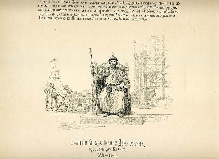 | Keywords: 38 History of the Russian state in the image of its sovereign rulers.jpg ru Великий Князь Иоанн Данилович п озванием Калита 1328-1340 г <br>Великий Князь Иоанн Данилович Соби атель земли усской муд ым п авлением своим способствовал соединению усских сил вок уг одного общего госуда ственного цент а - осквы кото ую он значительно обогатил и сделал мит ополией Он всегда носил с собою калиту мешок с деньгами для аздачи бедным и потому п озван Калитою Исполняя желание ит ополита Пет а он пост оил в оскве каменную це ковь во имя Успения Богомате и full 38 History of the Russian state in the image of its sovereign rulers - fragment jpg Ivan Kalita in engravings |