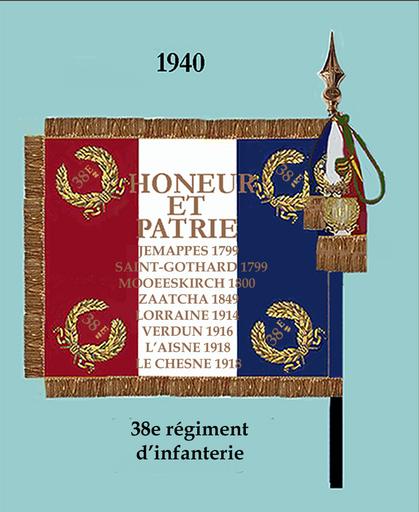 Keywords: 38e rég inf 1940 rev.png fr Drapeau du 38e régiment d'infanterie de 1940 own Centenier Cc-zero Drapeaux du 38e régiment d'infanterie 11 Colors of the french infantry 1940 038