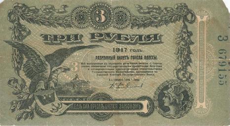 | Keywords: Одесские 3 рубля 1917 аверс.jpg Одесские деньги - 3 убля аве с 1917 Transferred from http //ru wikipedia org ru wikipedia<br/> Original text собственный скан бумажных денег 1917 \ оциф овка 2007 года<br/> 2007 09 18 original upload date Одесское казначейство 1917 год выпуска Одесса Разместил Викто Визу Original uploader was Vizu at http //ru wikipedia org ru wikipedia PD-RU-EXEMPT; PD-UA-EXEMPT PD-RU-exempt banknotes PD-UA-exempt banknotes PD-old-70 original upload log page ru wikipedia D0 9E D0 B4 D0 B5 D1 81 D1 81 D0 BA D0 B8 D0 B5_3_ D1 80 D1 83 D0 B1 D0 BB D1 8F_1917_ D0 B0 D0 B2 D0 B5 D1 80 D1 81 jpg jpg 2007-09-18 18 02 Vizu 5792×3187× 2383942 bytes <nowiki> Описание Авто В емя создания Источник </nowiki> Banknotes of Odessa 1917 1919 Eagles on banknotes Banknotes with a face value of 3 |