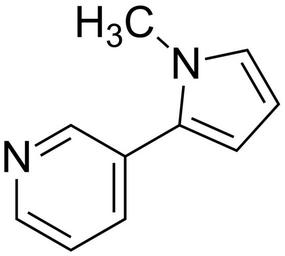 | Keywords: 3-(1-methyl-1H-pyrrol-2-yl)pyridine 200.svg validSVG Structure of 3- 1-methyl-1H-pyrrol-2-yl pyridine Own 2014-05-15 Emeldir <span class signature-talk ></span> Chemical structure verified https //upload wikimedia org/wikipedia/commons/8/84/3- 281-methyl-1H-pyrrol-2-yl 29pyridine_200 svg 1S/C10H10N2/c1-12-7-3-5-10 12 9-4-2-6-11-8-9/h2-8H 1H3 RYFOJXFXERAMLS-UHFFFAOYSA-N 487-19-4 Synonyms <small> beta -Nicotyrine 1-Methyl-2- 3-pyridyl pyrrole 3 2'-Nicotyrine 3- 1-Methyl-1H-pyrrol-2-yl pyridine 3- 1-Methyl-2-pyrrolyl pyridine 3- 1-Methylpyrrol-2-yl pyridine 3- 1-methylpyrrol-2-yl pyridine beta-Nicotyrine Nicotyrine Pyridine 3- 1-methyl-1H-pyrrol-2-yl - 9CI Pyridine 3- 1-methylpyrrol-2-yl - 8CI </small> PD-chem Pyridine alkaloids Azoles Methyl compounds |