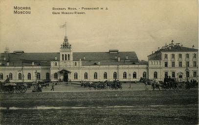 | Keywords: Рязанский вокзал3.jpg pre-revolutionaty russian postcard of Kazansky Rail Terminal Казанский вокзал в оскве http //www philatelist ru/stampnew/shop/index php categoryID 410 ukey index php sort name direction DESC < 1913 Author PD-RusEmpire Historical images of Komsomolskaya Square Kazansky Rail Terminal Historical images of train stations in Moscow Horse drawn taxis in Moscow |