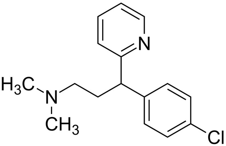 | Keywords: 3-(4-chlorophenyl)-N,N-dimethyl-3-(pyridin-2-yl)propan-1-amine 200.svg validSVG Structure of 3- 4-chlorophenyl -N N-dimethyl-3- pyridin-2-yl propan-1-amine Own 2014-06-09 Emeldir <span class signature-talk ></span> Chemical structure verified https //upload wikimedia org/wikipedia/commons/1/1f/3- 284-chlorophenyl 29-N 2CN-dimethyl-3- 28pyridin-2-yl 29propan-1-amine_200 svg 1S/C16H19ClN2/c1-19 2 12-10-15 16-5-3-4-11-18-16 13-6-8-14 17 9-7-13/h3-9 11 15H 10 12H2 1-2H3 SOYKEARSMXGVTM-UHFFFAOYSA-N 132-22-9 Synonyms <small> + -Chlorpheniramine + -Chlorpheniramine maleate ± -3- 4-Chlorophenyl -NN-dimethyl-3- 2-pyridyl propylamine hydrogen maleate +lg- 4-Chlorophenyl -N N-dimethyl-2-pyridinepropanamine +lg- 4-Chlorophenyl -N N-dimethyl-2-pyridinepropanamine maleate 2-2- dimethylamino ethylbenzylpyridine 2-2- dimethylamino ethylbenzylpyridine 3- 4-chlorophenyl -N N-dimethyl-3- pyridin-2-yl propan-1-amine 3- 4-chlorophenyl -N N-dimethyl-3-pyridin-2-ylpropan-1-amine Allergican Allergisan Chlo-amine Chlorfenamin-maleinát Chlorfenamino maleatas Chlorofenaminy maleinian Chlorophenylpyridamine Chloropiril Chloroprophenpyridamine Chlorphenamine Chlorphenamine Maleate Chlorphenamini Maleas Chlorphenaminum chlorpheniramine Chlorpheniramine Chlorpheniramine base Chlorpheniramine d-form Chlorpheniramine d-form maleate Chlorpheniramine Maleate Chlorpheniraminum Chlorphénamine maléate de Chlorprophenpyridamine Maleate Clorfenamina Clorfenamina maleato de Clorfeniramina Cloropiril d-Chlorpheniramine d-Chlorpheniramine Maleate Dekschlorfeniramino maleatas Dekskloorifeniramiinimaleaatti Dexchlorfeniramin-maleinát Dexchloropheniramine maleate Dexchlorphenamine Maleate Dexchlorpheniramine Dexchlorpheniramine Maleate Dexchlorpheniramini Maleas Dexchlorpheniraminum Dexchlorphéniramine Maléate de Dexclorfeniramina Dexclorfeniramina maleato de Dexklorfeniraminmaleat Dexklórfeniramin-maleát Fortamine gamma- 4-Chlorophenyl -N N-dimethyl-2-pyridinepropanamine gamma- 4-Chlorophenyl -N N-dimethyl-2-pyridinepropanamine maleate Haynon Hayon Histadur HSDB 3032 HSDB 3054 Isomerine Kloorifenamiinimaleaatti Klorfenaminmaleat Klórfenamin-maleát Phendextro Polamin Polaramine Polaronil S- + -Chlorpheniramine maleate Sensidyn</small> PD-chem Chlorphenamine |