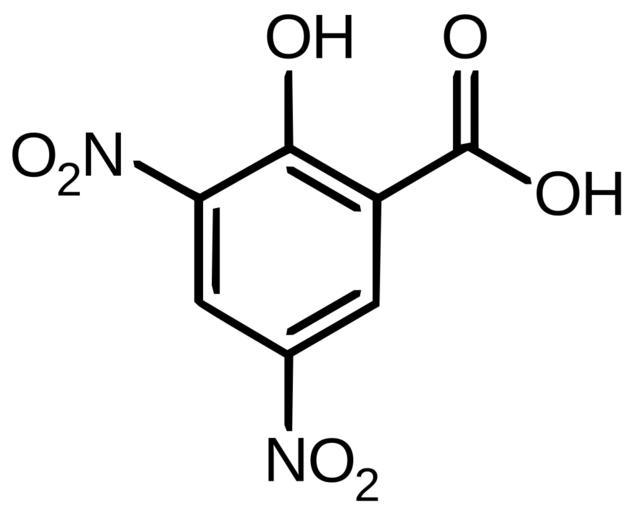 Keywords: 3,5-dinitrosalicylic acid.svg Skeletal formula of 3 5-dinitrosalicylic acid Created using ISIS/Draw and Inkscape own Krakatit 2008-09-05 Image 3 5-dinitrosalicylic-acid-2D-skeletal png Dinitrobenzenes Nitrosalicylic acids