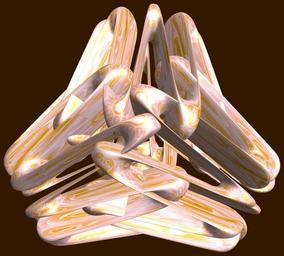 | Keywords: mathematica 3d cg parametricplot3d texture torus 輪環 りんかん ドーナツ どーなつ 八芒星 はちぼうせい 八光星 はちこうせい 八稜星 はちりょうせい code program algorithm コード プログラム アルゴリズム geometric sculpture geometricsculpture shape geometry sculpture mapping テクスチャ マッピング 模様 もよう abstract 抽象 ちゅうしょう アブストラクト design pattern デザイン パターン graphic グラフィック グラフィクス structure 意匠 構造 symmetry 対称性 たいしょうせい シンメトリー 対称 たいしょう algorithm コード black background indoor a = 3; (* center hole size of a torus *) b = 8; (* octa-torus *) c = -6; (* distance from the center of rotation *) d = 3; (* number of torus *) h = 3; (* height of a torus *) SetOptions[ParametricPlot3D, PlotRange -> Full, Mesh -> None, Boxed -> False, Axes -> False, PlotPoints -> 400, ImageSize -> 3000, Background -> Darker[Orange, 0.8], PlotStyle -> Directive[Specularity[White, 30], Texture[Import["D:/tmp/861.jpg"]]], TextureCoordinateFunction -> ({#4, #5 2 Pi} &), Lighting -> "Neutral"]; f[v_] := Sin[2 Sin[Sin[Sin[v]]]]; x = (a - Cos[t] - f[b s]) Cos[s + Pi/b]; y = (a - Cos[t] - f[b s]) Sin[s + Pi/b]; z = (a - Sin[t] - h f[b s]) + c; rm = Table[{x, y, z}.RotationMatrix[2 i Pi/d, {1, 1, 0}], {i, d}]; ParametricPlot3D[rm, {t, 0, 2 Pi}, {s, 0, 2 Pi}] (*--- The Texture *) a = 3; (* center hole size of a torus *) b = 8; (* octa-torus *) c = -6; (* distance from the center of rotation *) d = 3; (* number of torus *) h = 3; (* height of a torus *) SetOptions[ParametricPlot3D, PlotRange -> Full, Mesh -> None, Boxed -> False, Axes -> False, PlotPoints -> 400, ImageSize -> 3000, Background -> Darker[Orange, 0.8], PlotStyle -> Directive[Specularity[White, 30], Texture[Import["D:/tmp/861.jpg"]]], TextureCoordinateFunction -> ({#4, #5 2 Pi} &), Lighting -> "Neutral"]; f[v_] := Sin[2 Sin[Sin[Sin[v]]]]; x = (a - Cos[t] - f[b s]) Cos[s + Pi/b]; y = (a - Cos[t] - f[b s]) Sin[s + Pi/b]; z = (a - Sin[t] - h f[b s]) + c; rm = Table[{x, y, z}.RotationMatrix[2 i Pi/d, {1, 1, 0}], {i, d}]; ParametricPlot3D[rm, {t, 0, 2 Pi}, {s, 0, 2 Pi}] (*--- The Texture *) |