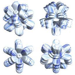 | Keywords: mathematica 3d cg parametricplot3d texture torus 輪環 りんかん ドーナツ どーなつ 五芒星 ごぼうせい 五光星 ごこうせい 五稜星 ごりょうせい program プログラム code コード algorithm コード アルゴリズム pentagram geometric sculpture geometricsculpture shape geometry sculpture mapping テクスチャ マッピング 模様 もよう design pattern デザイン パターン graphic グラフィック グラフィクス structure 意匠 構造 symmetry 対称性 たいしょうせい シンメトリー 対称 たいしょう algorithm white background plant flower indoor drawing pastel SetOptions[ParametricPlot3D, PlotRange -> Full, Mesh -> None, Boxed -> False, Axes -> None, PlotPoints -> 300, ImageSize -> 1000, PlotStyle -> Directive[Specularity[White, 30], Texture[Import["D:/tmp/863.jpg"]]], TextureCoordinateFunction -> ({#4 + 2 #5, #5/Pi} &), Lighting -> "Neutral"]; a = 3; (* center hole size *) b = 5; (* penta-torus *) c = 0; (* distance from the center of rotation *) d = 3; (* number of torus *) f[v_] := Sum[Sin[(2 k - 1) v]/(2 k - 1), {k, 3}]; x = (a - Cos[t] - f[b s]) Cos[s + Pi/(2 b)] + c; y = Sin[t] + c; z = (a - Cos[t] - f[b s]) Sin[s + Pi/(2 b)] + c; rot = Table[{x, y, z}.RotationMatrix[2 i Pi/d, {1, 0, 0}], {i, d}]; ParametricPlot3D[rot, {t, 0, 2 Pi}, {s, 0, 2 Pi}] (*--- The Texture The g[] is a 3-partial sum of the Fourier series for Square wave. g[]は矩形波のフーリエ展開の最初の3項 *) SetOptions[ParametricPlot3D, PlotRange -> Full, Mesh -> None, Boxed -> False, Axes -> None, PlotPoints -> 300, ImageSize -> 1000, PlotStyle -> Directive[Specularity[White, 30], Texture[Import["D:/tmp/863.jpg"]]], TextureCoordinateFunction -> ({#4 + 2 #5, #5/Pi} &), Lighting -> "Neutral"]; a = 3; (* center hole size *) b = 5; (* penta-torus *) c = 0; (* distance from the center of rotation *) d = 3; (* number of torus *) f[v_] := Sum[Sin[(2 k - 1) v]/(2 k - 1), {k, 3}]; x = (a - Cos[t] - f[b s]) Cos[s + Pi/(2 b)] + c; y = Sin[t] + c; z = (a - Cos[t] - f[b s]) Sin[s + Pi/(2 b)] + c; rot = Table[{x, y, z}.RotationMatrix[2 i Pi/d, {1, 0, 0}], {i, d}]; ParametricPlot3D[rot, {t, 0, 2 Pi}, {s, 0, 2 Pi}] (*--- The Texture The g[] is a 3-partial sum of the Fourier series for Square wave. g[]は矩形波のフーリエ展開の最初の3項 *) |