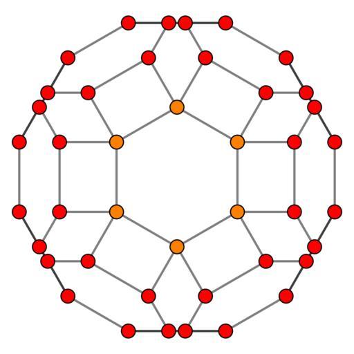 Keywords: 3-cube t012.svg en Cube family graph in B3 en Coxeter plane own 10/9/10 self Set of colored Coxeter plane graphs; 42 vertices