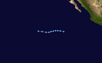 | Keywords: 3-E 1997 track.png Track map of Tropical Depression Three-E of the 1997 Pacific hurricane season The points show the location of the storm at 6-hour intervals The colour represents the storm's maximum sustained wind speeds as classified in the Saffir-Simpson Hurricane Scale see below and the shape of the data points represent the nature of the storm according to the legend below User Nilfanion/Tc/T Created by Cyclonebiskit using Wikipedia WikiProject Tropical cyclones/Tracks The background image is from NASA Tracking data switch source from the National Hurricane Center <sup>http //www nhc noaa gov/pastall shtml</sup> from the Central Pacific Hurricane Center <sup>http //www prh noaa gov/cphc/summaries/</sup> from the Joint Typhoon Warning Center <sup>https //metocph nmci navy mil/jtwc/best_tracks/</sup> from the Japan Meteorological Agency <sup>http //www jma go jp/jma/jma-eng/jma-center/rsmc-hp-pub-eg/besttrack html</sup> from the National Hurricane Center <sup>http //www nhc noaa gov/pastall shtml and the Central Pacific Hurricane Center http //www prh noaa gov/cphc/summaries/</sup> from the Central Pacific Hurricane Center <sup>http //www prh noaa gov/cphc/summaries/ and the Joint Typhoon Warning Center https //metocph nmci navy mil/jtwc/best_tracks/</sup> from the w National Hurricane Center <sup>http //www nhc noaa gov/pastall shtml</sup> or the Joint Typhoon Warning Center <sup>https //metocph nmci navy mil/jtwc/best_tracks/</sup> June 21-24 1997 Cyclonebiskit 1997 Pacific hurricane season Pacific hurricane tracks |