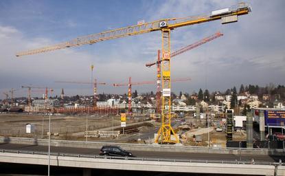 Keywords: 3. Etappe Glattalbahn Wallisellen - Glattzentrum.jpg en Construction site of the third stage of the Glattal light railway between Wallisellen SBB left in the background to the Glattzentrum shopping centre position of the photographer The new line rises from ground level ramp in the background crosses the SBB line and continues to the Glattzentrum on a bridge The pillars of this bridge are visible on the right de Dritte Etappe der Glattalbahn zwischen Bahnhof Wallisellen links hinten und dem Glattzentrum Position des Fotografen im Bau Eine Rampe führt über die SBB-Strecke danach folgt eine Brücke zum Glattzentrum; die Pfeiler sind rechts schon sichtbar own http //www bahnbilder ch/picture/3214 Kabelleger / David Gubler 2009-02-06 Glattalbahn Construction cranes in Switzerland Tower cranes in Switzerland Construction in the canton of Zürich Bahnbilder ch Wallisellen