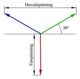 Keywords: 3-fas-huvudspänning.svg sv Samband mellan huvudspånning och fasspänning own SiriusA Three-phase electric power