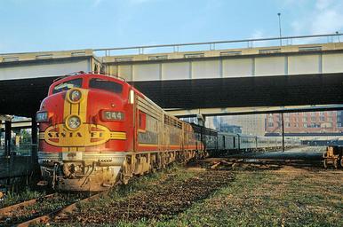 | Keywords: santa fe santafe warbonnet railroad vehicle train outdoor locomotive 3. ATSF 344 (F7A) with Train 16, The Texas Chief, ready to depart Union Station in Houston, TX on June 7, 1969. A Roger Puta photo. 3. ATSF 344 (F7A) with Train 16, The Texas Chief, ready to depart Union Station in Houston, TX on June 7, 1969. A Roger Puta photo. |