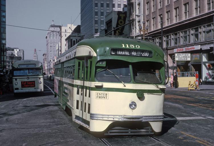 | Keywords: san francisco sanfrancisco Roger Puta took these on August 24, 1967 standing on the Market St. Streetcar Island near 2nd St. in San Francisco, CA. 1150 as a L TARAVAL 46th - ZOO car. Roger Puta took these on August 24, 1967 standing on the Market St. Streetcar Island near 2nd St. in San Francisco, CA. 1150 as a L TARAVAL 46th - ZOO car. |