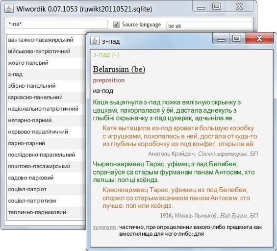 | Keywords: 3-pod filter be-uk (Wiwordik 0 07 ruwikt).jpg The wordcard of the Belarusian word з-пад from the Russian Wiktionary The list of Belarusian and Ukrainian words which contain the substring -па Screenshot of the open-source software http //code google com/p/wikokit/ Wiwordik 0 07 with data extracted from the Russian Wiktionary Ка точка бело усского слова з-пад из Русского Викислова я Список ук аинских и бело усских слов соде жащих подст оку -па Ск иншот п ог аммы с отк ытым исходным кодом http //code google com/p/wikokit/ Wiwordik 0 07 Данные извлечены из Русского Викислова я Own 2011 AKA MBG Russian Wiktionary |