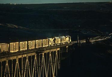 | Keywords: santa fe santafe architecture bridge skyline outdoor night building structure water building infrastructure city These are 5 of Roger Puta's photographs of 3 Santa Fe freights crossing the Colorado River bridge and the Arizona-California border at Topock, AZ in February 1984. The sun was up producing a great glint on the eastbound second train. Telephoto lens shot. These are 5 of Roger Puta's photographs of 3 Santa Fe freights crossing the Colorado River bridge and the Arizona-California border at Topock, AZ in February 1984. The sun was up producing a great glint on the eastbound second train. Telephoto lens shot. These are 5 of Roger Puta's photographs of 3 Santa Fe freights crossing the Colorado River bridge and the Arizona-California border at Topock, AZ in February 1984.