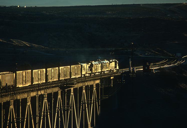Keywords: santa fe santafe architecture bridge skyline outdoor night building structure water building infrastructure city These are 5 of Roger Puta's photographs of 3 Santa Fe freights crossing the Colorado River bridge and the Arizona-California border at Topock, AZ in February 1984. The sun was up producing a great glint on the eastbound second train. Telephoto lens shot. These are 5 of Roger Puta's photographs of 3 Santa Fe freights crossing the Colorado River bridge and the Arizona-California border at Topock, AZ in February 1984. The sun was up producing a great glint on the eastbound second train. Telephoto lens shot. These are 5 of Roger Puta's photographs of 3 Santa Fe freights crossing the Colorado River bridge and the Arizona-California border at Topock, AZ in February 1984. The sun was up producing a great glint on the eastbound second train. Telephoto lens shot. santafe 3 Santa Fe Trains Crossing the Colorado River at Sunrise - 5 Photos (31266680705).jpg en These are 5 of Roger Puta's photographs of 3 Santa Fe freights crossing the Colorado River bridge and the Arizona-California border at Topock AZ in February 1984 <br> The sun was up producing a great glint on the eastbound second train Telephoto lens shot 2016-11-26 21 57 51 https //www flickr com/people/129679309 N05 railfan 44 https //www flickr com/photos/129679309 N05/31266680705/ User Fæ/Flickr API Puta's AT SF BN and pre BN The Light Fantastic I Love Trains Your Best Photography Railroad Photographer USA/Canada Progressive and Artistic Railway Photography Your Best Railroad Photos Fine Art Photography of Railroading Quality and Exceptional Railway Photographs Art Rail Railroad Photography Junction The Golden Hour Glory Santa Fe Mel Finzer RogerPuta Photographs by Roger Puta Photos uploaded from Flickr by Fæ using a script 1984 in rail transport in the United States
