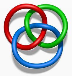 | Keywords: 3D Borromean Rings.png Created with Persistence of Vision en Borromean rings in three dimensions own Jim belk 2010-03-23 Borromean rings Images with Povray source code Tubular knots and links Knots and links on white background Blue green red 3 component links 6 crossing number knots and links Alternating knots and links Source This image was created using POV-Ray for Windows version 3 6 The image was rendered to an 1800 x 1800 square using 0 3 anti-aliasing <pre> include colors inc background color White global_settings assumed_gamma 1 0 camera location <0 0 -25> right <1 0 0> up <0 1 0> look_at <0 0 0> angle 5 light_source <0 20 -50> color White area_light <5 0 0> <0 5 0> 10 10 / very slow decrease 10 to 2 for experiments / adaptive 3 declare r_tube 0 07; // thickness radius of tube sphere_sweep cubic_spline 41 <0 529661 -0 594778 0 122625> r_tube <0 445903 -0 655338 0 0846814> r_tube <0 35209 -0 701296 0 0501237> r_tube <0 251313 -0 733518 0 0200119> r_tube <0 146283 -0 752852 -0 00634747> r_tube <0 0392759 -0 759694 -0 0309223> r_tube <-0 0676501 -0 753719 -0 056109> r_tube <-0 172272 -0 733906 -0 0838346> r_tube <-0 271917 -0 698838 -0 114803> r_tube <-0 363446 -0 647251 -0 147954> r_tube <-0 443502 -0 578676 -0 180421> r_tube <-0 508876 -0 494021 -0 207943> r_tube <-0 556924 -0 395976 -0 225563> r_tube <-0 585965 -0 289101 -0 2285> r_tube <-0 595581 -0 179575 -0 213011> r_tube <-0 586903 -0 0743825 -0 17725> r_tube <-0 562491 0 0201541 -0 121931> r_tube <-0 525252 0 100497 -0 0507759> r_tube <-0 475501 0 167685 0 0286079> r_tube <-0 408139 0 22591 0 102618> r_tube <-0 317977 0 277313 0 151819> r_tube <-0 211347 0 319366 0 158192> r_tube <-0 106807 0 348753 0 115548> r_tube <-0 0187962 0 36461 0 0349709> r_tube <0 061434 0 367495 -0 0575569> r_tube <0 155338 0 358991 -0 130741> r_tube <0 265874 0 340076 -0 160751> r_tube <0 375064 0 3108 -0 140428> r_tube <0 466052 0 272398 -0 0804492> r_tube <0 536932 0 224982 -0 00140191> r_tube <0 59484 0 165105 0 0778902> r_tube <0 64346 0 0888005 0 14568> r_tube <0 680771 -0 00403318 0 195503> r_tube <0 702868 -0 109052 0 224289> r_tube <0 70662 -0 219517 0 231947> r_tube <0 690499 -0 32838 0 220944> r_tube <0 654575 -0 429708 0 195574> r_tube <0 600194 -0 519299 0 161057> r_tube <0 529661 -0 594778 0 122625> r_tube <0 445903 -0 655338 0 0846814> r_tube <0 35209 -0 701296 0 0501237> r_tube pigment color rgb <0 0 25 1> finish ambient 0 15 diffuse 0 85 brilliance 2 phong 0 25 phong_size 7 5 sphere_sweep cubic_spline 37 <-0 719888 0 645829 -0 0218507> r_tube <-0 768781 0 559654 0 0298885> r_tube <-0 803145 0 466606 0 0815558> r_tube <-0 821115 0 368063 0 131539> r_tube <-0 820313 0 265747 0 177279> r_tube <-0 798686 0 162322 0 21512> r_tube <-0 755594 0 0617437 0 240719> r_tube <-0 692704 -0 031097 0 249934> r_tube <-0 614194 -0 111318 0 239755> r_tube <-0 526127 -0 175046 0 208994> r_tube <-0 435034 -0 220129 0 15866> r_tube <-0 345886 -0 246089 0 0922207> r_tube <-0 25981 -0 252691 0 016062> r_tube <-0 173545 -0 237613 -0 0593672> r_tube <-0 0838838 -0 196926 -0 11915> r_tube <0 00608349 -0 130973 -0 147128> r_tube <0 0872684 -0 0493372 -0 132625> r_tube <0 151474 0 033352 -0 0769409> r_tube <0 197016 0 11242 0 00358651> r_tube <0 228921 0 200721 0 080574> r_tube <0 251314 0 308244 0 125269> r_tube <0 260826 0 424649 0 122324> r_tube <0 25235 0 531298 0 0755388> r_tube <0 225345 0 619959 0 00303709> r_tube <0 180497 0 695172 -0 0744728> r_tube <0 116588 0 762215 -0 142624> r_tube <0 0334304 0 82017 -0 193823> r_tube <-0 0656166 0 864496 -0 224638> r_tube <-0 1745 0 890627 -0 234591> r_tube <-0 286211 0 895797 -0 225511> r_tube <-0 394284 0 879547 -0 200813> r_tube <-0 493862 0 843436 -0 164602> r_tube <-0 582028 0 790328 -0 120799> r_tube <-0 657502 0 723483 -0 0725182> r_tube <-0 719888 0 645829 -0 0218507> r_tube <-0 768781 0 559654 0 0298885> r_tube <-0 803145 0 466606 0 0815558> r_tube pigment color rgb <1 0 0> finish ambient 0 15 diffuse 0 85 brilliance 2 phong 0 25 phong_size 7 5 sphere_sweep cubic_spline 36 <0 332229 -0 200194 0 0319429> r_tube <0 240986 -0 18778 0 102142> r_tube <0 142273 -0 149526 0 14784> r_tube <0 0437829 -0 0892733 0 154898> r_tube <-0 0426289 -0 0188166 0 118191> r_tube <-0 109415 0 0509438 0 0463592> r_tube <-0 158879 0 124444 -0 0379293> r_tube <-0 198878 0 215876 -0 105205> r_tube <-0 230049 0 326332 -0 13237> r_tube <-0 244534 0 440467 -0 112495> r_tube <-0 237081 0 542413 -0 0554059> r_tube <-0 208334 0 628128 0 0197617> r_tube <-0 159532 0 702685 0 0948605> r_tube <-0 090494 0 769488 0 158027> r_tube <-0 00252631 0 826517 0 202712> r_tube <0 10003 0 869139 0 225845> r_tube <0 210623 0 893114 0 227186> r_tube <0 322076 0 896157 0 208867> r_tube <0 428165 0 878406 0 174704> r_tube <0 524644 0 841905 0 129229> r_tube <0 609388 0 789578 0 0766789> r_tube <0 681658 0 724211 0 020415> r_tube <0 740974 0 647814 -0 0370009> r_tube <0 786217 0 561583 -0 0933421> r_tube <0 815325 0 466454 -0 146038> r_tube <0 825623 0 363958 -0 191694> r_tube <0 814766 0 257096 -0 22614> r_tube <0 782005 0 150697 -0 244984> r_tube <0 729085 0 0507977 -0 244631> r_tube <0 660339 -0 0366285 -0 223175> r_tube <0 581819 -0 107008 -0 180863> r_tube <0 499516 -0 158036 -0 120275> r_tube <0 416827 -0 18931 -0 0465171> r_tube <0 332229 -0 200194 0 0319429> r_tube <0 240986 -0 18778 0 102142> r_tube <0 142273 -0 149526 0 14784> r_tube pigment color rgb <0 0 75 0> finish ambient 0 15 diffuse 0 85 brilliance 2 phong 0 25 phong_size 7 5 plane <0 0 -1> -0 33 pigment color White finish ambient 0 35 diffuse 0 65 </pre> |