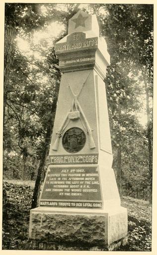 | Keywords: 3rd MD Infantry p60.jpg en 3rd Maryland Infantry Monument Gettysburg Battlefield Report of the State of Maryland Gettysburg Monument Commission Baltimore Wiliam K Boyle Son 1891 opp p 60 https //archive org/stream/reportofstateofm00mary page/n7/mode/2up Report of the State of Maryland Gettysburg Monument Commission Baltimore Wiliam K Boyle Son 1891 W H Tipton photographer 1891 PD-Old Battle of Gettysburg memorials Maryland 003 PD-US | ||||