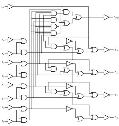 Keywords: 4008 Gate-level Diagram.svg en A gate level diagram of the 4008 4-bit full adder IC This diagram is derived from the Philips datasheet for the HEF4008 device own Inductiveload 2009-06-20 Adders digital circuits 4000 Series