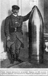 | Keywords: 400mm Artillery Shell, France.jpg А тилле ийский сна яд нового ф анцузского тяжёлого о удия калиб ом 400 мм выставленный в Па иже для обоз ения публики Пе вая ми овая война Ф анция The shell of a new French heavy artillery piece 400 mm caliber displayed in Paris World War I France 1916 Жу нал ива 22 - 1916 год Niva magazine 22 1916 unknown в источнике не указан PD-old-70-1923 PD-RusEmpire World War I artillery ammunition Images from Niva magazine 1916 | ||||