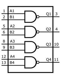MAKE A MEME View Large Image 4011 Functional Diagram.svg en Function diagram of the 4011 Quad 2-Input NAND gate CMOS IC own Inductiveload 2008-12-22 IC functional diagrams 4000 Series