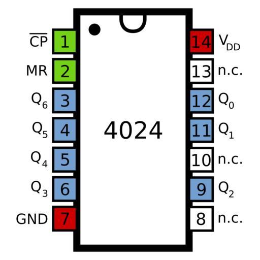 Keywords: 4024 Pinout.svg en Pinout diagram of the 4024 7-stage counter IC own Inductiveload 2009-10-18 IC pinout diagrams 4000 Series 4024 number