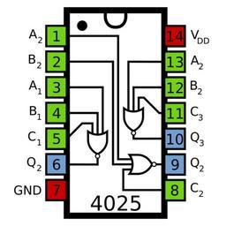Keywords: 4025 Pinout.svg en Pinout of a 4025 Triple 3-Input NOR gate CMOS IC own Inductiveload 2008-12-22 IC pinout diagrams 4000 Series