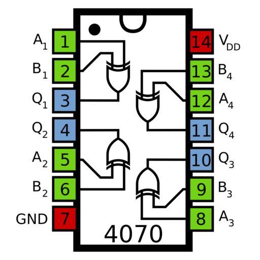 Keywords: 4070 Pinout.svg en Pinout diagram of the the 4070 Quad 2-Input XOR gate CMOS IC own Inductiveload 2008-12-23 IC pinout diagrams 4000 Series