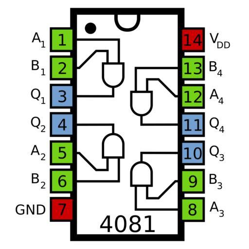 MAKE A MEME View Large Image 4081 Pinout.svg Pinout Diagram of a 4081 Quad AND Gate IC Own drawing Inkscape 0 43 12/07/06 inductiveload PD IC pinout diagrams