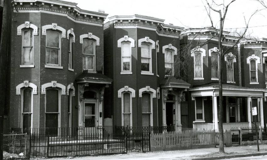 | Keywords: vcu libraries vculibraries vcu digital collections vcudigitalcollections building architecture outdoor blackandwhite black and white Address/Title: 409 - 417 West Clay Street Photographer: Zehmer, John G. (John Granderson), 1942- Original Description (from Book): Built about 1890, this row of detached houses is unusual because of three sided bay windows with galvanized arched window trim. A number of the houses have their original porches. Several porches have been altered in the early twentieth century. City/Location: Richmond (Va.) Date of photograph: ca. 1978 Map URL: maps.google.com/maps?q=37.549287,+-77.44377 Original Publication: Zehmer, John G., and Robert P. Winthrop. 1978. The Jackson Ward historic district. Richmond: Dept. of Planning and Community Development. Rights: This item is in the public domain. Acknowledgement of the Virginia Commonwealth University Libraries as a source is requested. Reference URL: dig.library.vcu.edu/u?/jwh,425 Collection: VCU Jackson Ward Historic District Address/Title: 409 - 417 West Clay Street Photographer: Zehmer, John G. (John Granderson), 1942- Original Description (from Book): Built about 1890, this row of detached houses is unusual because of three sided bay windows with galvanized arched window trim. A number of the houses have their original porches. Several porches have been altered in the early twentieth century. City/Location: Richmond (Va.) Date of photograph: ca. 1978 Map URL: maps.google.com/maps?q=37.549287,+-77.44377 Original Publication: Zehmer, John G., and Robert P. Winthrop. 1978. The Jackson Ward historic district. Richmond: Dept. of Planning and Community Development. Rights: This item is in the public domain. Acknowledgement of the Virginia Commonwealth University Libraries as a source is requested. Reference URL: dig.library.vcu.edu/u?/jwh,425 Collection: VCU Jackson Ward Historic District |