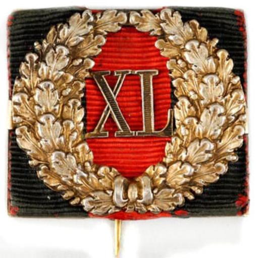 | Keywords: Знак отличия «за 40 лет беспорочной службы».jpg  ru Знак отличия беспо очной службы - установлен с 22 августа 1827 года П оисходили ежегодные пожалования знака кото ым наг аждались как военные так и штатские лица Знак п едставляет собой квад атную сквозную п яжку се еб яную с позолотой в кото ую вставлялась о денская лента Пове х ленты был ук еплен дубовый венок с латинской циф ой означавшей количество лет п оведенных на службе Other date XIX век http //medalirus ru/rus-ordena/znaki-otlichiya-za-sluzhbu php author other versions Custom license marker 2016 12 25 PD-RusEmpire Badge of the Russian Empire |
